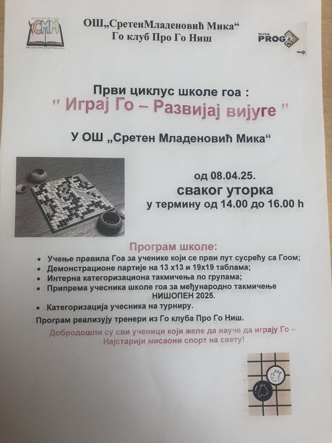 je u okviru svog ogranka Naučnog kluba Centra za stručno usavršavanje, organizovala promociju Goa juna 2023, kada su učenici pokazali veliko interesovanje za igranje Goa.